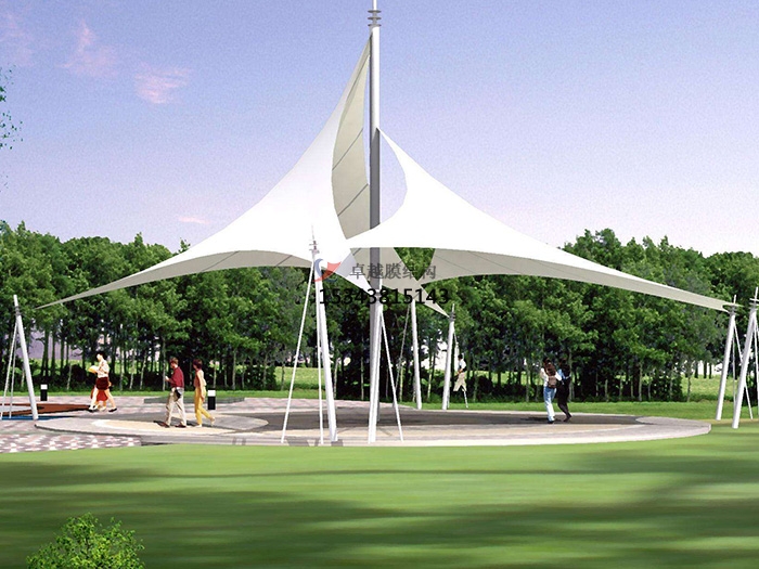 5、張拉膜景觀布局跨度比較大,并且自重比較輕,可以靈活設(shè)計(jì),并且空間利用得到更大化;