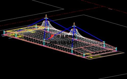 本工程膜材采用白色高端國產星益達PVDF高自潔環(huán)保建筑膜材,鋼結構采用更好的標準Q235B鋼材,表面采用酚醛底漆處理,面漆采用白色鋼結構專用快干磁漆。