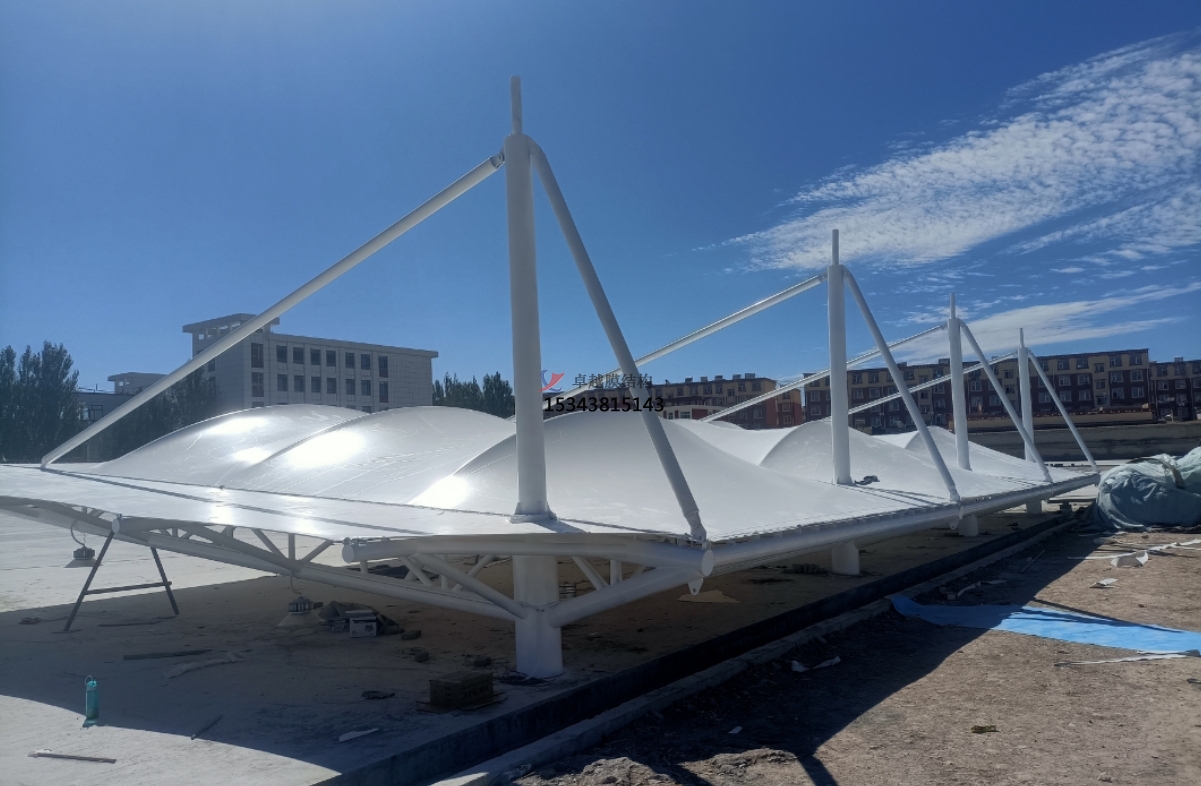 膜結(jié)構(gòu)材料具有較好的耐久性和自潔性。一般情況下,只需要定期進(jìn)行簡單的清潔和檢查,不需要像傳統(tǒng)建筑結(jié)構(gòu)那樣頻繁地進(jìn)行大規(guī)模的維修和保養(yǎng)。選擇具有自潔性的膜材,表面的自潔涂層可以在雨水的沖刷下自動清潔灰塵和污漬,大大降低了維護(hù)成本。