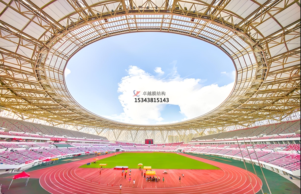 在體育場館及其他設施采用內(nèi)膜,不僅可以改善透光、吸音及保溫作用,還可以改善建筑外觀,可以將復雜的鋼結(jié)構(gòu)、馬道及各種管道等進行遮擋,采用高通透性的網(wǎng)格膜可以使鋼結(jié)構(gòu)變得若隱若現(xiàn)。