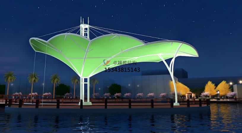 張拉膜景觀的應(yīng)用場景:商業(yè)空間,文化設(shè)施,運動場地,旅游景點。在商業(yè)空間中,如購物中心、商業(yè)廣場的入口、中庭等,可吸引顧客目光,提升商業(yè)氛圍。在文化設(shè)施中博物館圖書館等文化場所,可營造開放、溫馨的室內(nèi)環(huán)境,增添文化藝術(shù)氣息。在運動場地中足球場、籃球場等運動場館的屋頂或看臺,實現(xiàn)大跨度覆蓋,為觀眾和運動員提供良好的空間環(huán)境。在旅游景點景區(qū)大門、游客服務(wù)中心、觀景臺等,可彰顯地域特色,為游客提供遮陽避雨的空間。張拉膜景觀材料可在工廠預(yù)制,現(xiàn)場安裝快速高效,大大縮短施工周期。這種結(jié)構(gòu)通常采用預(yù)應(yīng)力拉索體系,利用邊鎖的拉力和膜材的形狀構(gòu)成造型,盡可能減少結(jié)構(gòu)體型對膜材視覺的影響常用彩色膜材以體現(xiàn)其千變?nèi)f化的浪漫情懷。其靈活的設(shè)計和組合方式,使其能夠適應(yīng)各種復(fù)雜的地形和環(huán)境。張拉膜景觀在設(shè)計中,會充分結(jié)合當(dāng)?shù)氐臍夂颉⒕坝^和文化背景,使其不僅具有功能性,還能成為地域文化的象征,提升旅游地區(qū)的品質(zhì)形象。此外,張拉膜材料本身具有顯色性,在夜間彩燈的映射下能形成絢麗繽紛的景觀效果,為人們帶來時尚、輕松的休閑感受。