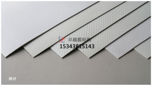目前建筑膜材廣泛認可的標準是三類,以玻璃纖維織物為基材涂PTFE膜,以玻璃纖維織物為基材涂PVC膜,以聚酯(滌綸)織物為基材涂PVDF膜,目前我們產(chǎn)品使用的大部分是PVDF膜布。