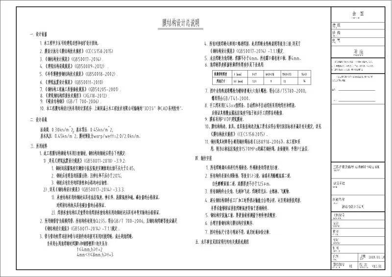 支撐體系是膜結(jié)構(gòu)的骨架,其設(shè)計(jì)合理性直接關(guān)系到整個(gè)結(jié)構(gòu)的穩(wěn)定性。設(shè)計(jì)圖紙?jiān)敿?xì)展示支撐體系的構(gòu)成,包括鋼索、鋼架、桅桿等構(gòu)件的布置方式、截面尺寸、連接節(jié)點(diǎn)等。鋼索作為主要的受力構(gòu)件,其直徑、材質(zhì)、預(yù)張力等參數(shù)經(jīng)過精確計(jì)算確定,以確保能夠承受膜面?zhèn)鬟f的拉力。鋼架則用于固定和支撐膜面,保證膜面的形狀穩(wěn)定。桅桿在部分膜結(jié)構(gòu)中起到提升和定位膜面的作用,其高度、傾角等設(shè)計(jì)需綜合考慮膜面形態(tài)與結(jié)構(gòu)受力要求。各構(gòu)件之間的連接節(jié)點(diǎn)設(shè)計(jì)至關(guān)重要,設(shè)計(jì)圖紙會(huì)明確節(jié)點(diǎn)的構(gòu)造形式、連接方式(如焊接、螺栓連接)以及防腐處理措施,確保節(jié)點(diǎn)在長(zhǎng)期使用過程中不發(fā)生破壞。