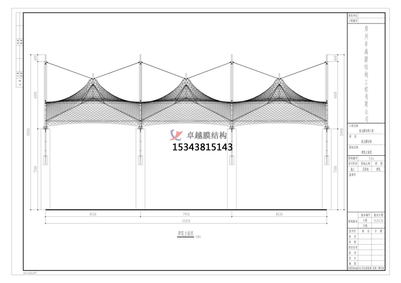 膜結(jié)構(gòu)看臺設計正立面圖。