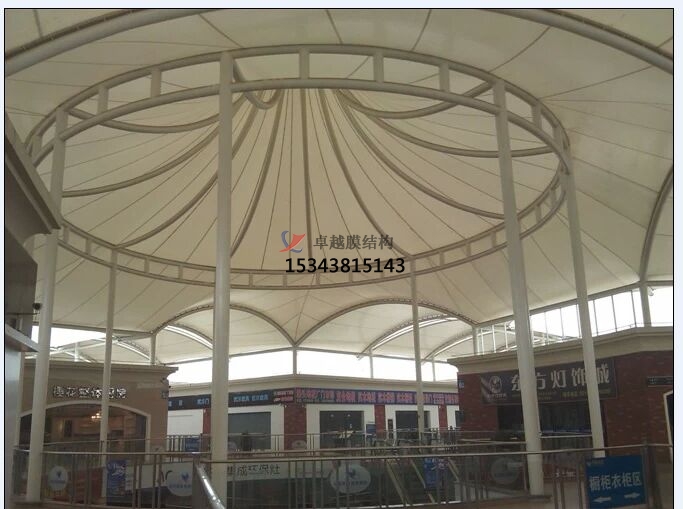 優(yōu)質(zhì)的膜結構雨棚具有一定自潔功能,空氣中的灰塵通過雨水的沖刷就能潔白如新。