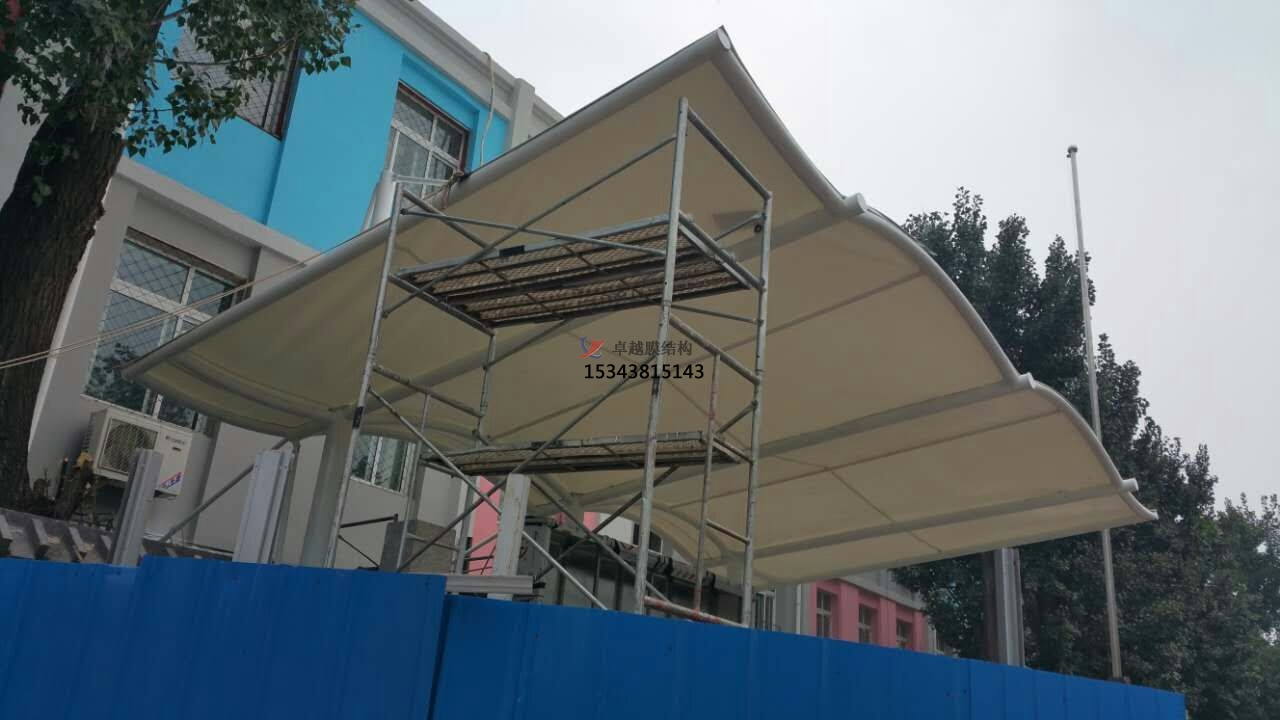 PVC膜材是一種經(jīng)濟實惠的膜材,由聚脂纖維織物加上PVC涂層(聚氯乙烯)而成。它的材質(zhì)柔軟,易于施工,但耐用年限較短,一般在5~8年。為了改善其耐候性,近年來已研發(fā)出在PVC涂層材的表面處理上做氟素系樹脂涂層的膜材