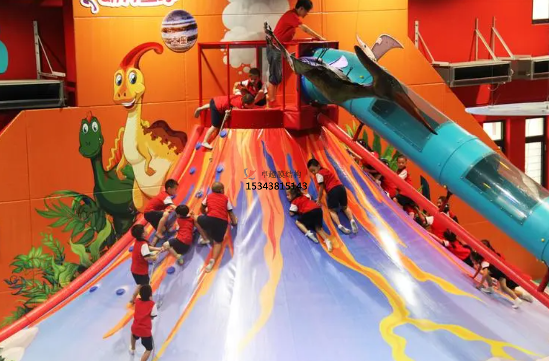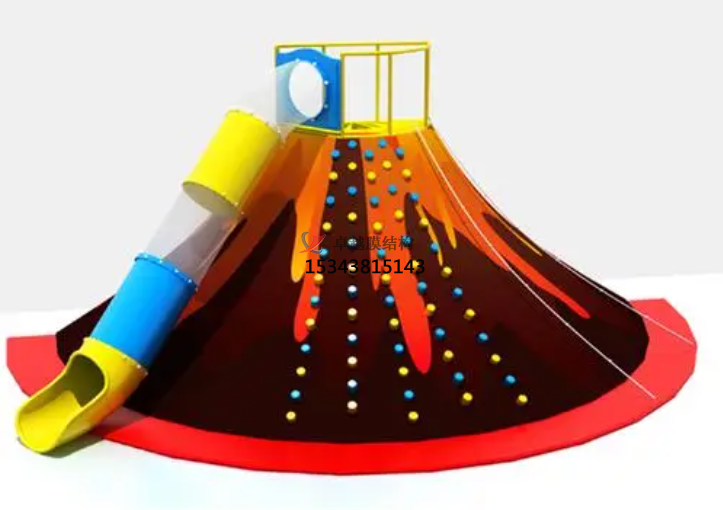 火山攀巖---它可以塑造出火山的外形,使整個(gè)游樂設(shè)備的外觀看起來像火山,從而得名火山攀巖。這種膜結(jié)構(gòu)能夠很好地貼合設(shè)計(jì)需求,通過一定的設(shè)計(jì)和加工工藝,將膜材覆蓋在支撐結(jié)構(gòu)上,構(gòu)建出火山形狀的外觀,為游樂場(chǎng)所增添獨(dú)特的景觀元素。