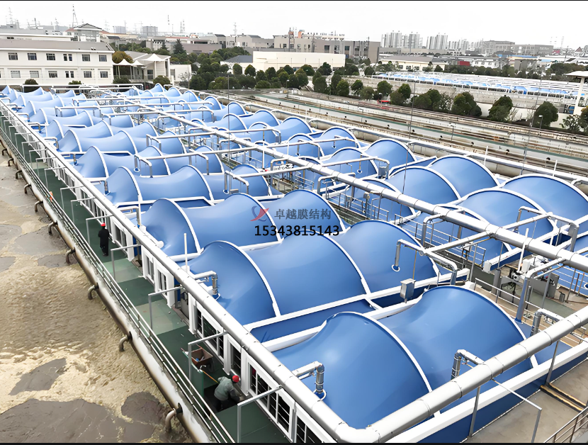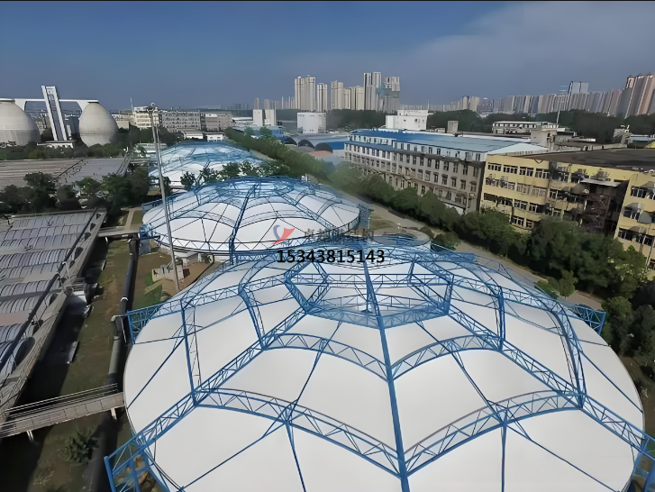 ?。轰摻Y(jié)構(gòu)制作和膜體加工都在工廠進(jìn)行,現(xiàn)場(chǎng)安裝時(shí)間短,減少場(chǎng)地占用,舊池體改造項(xiàng)目可采取結(jié)構(gòu)整體吊裝,不影響池體內(nèi)部設(shè)備運(yùn)轉(zhuǎn)。