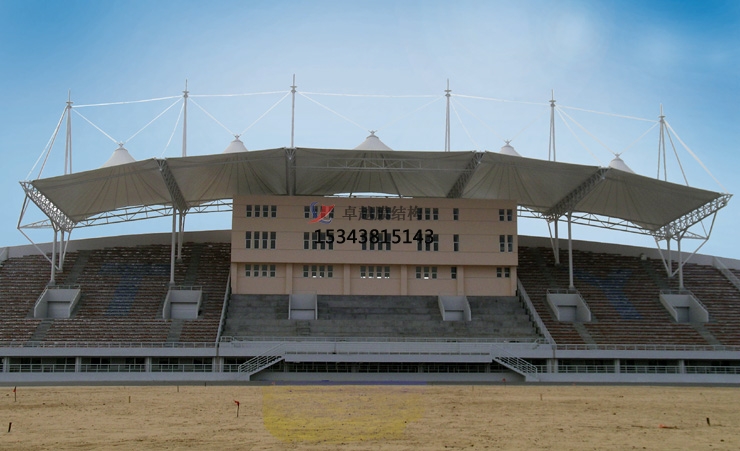 訂制體育場膜結(jié)構(gòu)看臺具有環(huán)保與安全性能。其可持續(xù)性設(shè)計(jì),通過透光膜材減少照明能耗,自潔涂層可降低維護(hù)成本。材料可回收,施工過程減少廢棄物排放。需通過結(jié)構(gòu)強(qiáng)度、抗老化、耐風(fēng)壓等多輪測試,確保50年以上使用壽命。在訂制體育場膜結(jié)構(gòu)看臺時,要選擇有經(jīng)驗(yàn)、信譽(yù)好的設(shè)計(jì)和施工團(tuán)隊(duì),嚴(yán)格按照相關(guān)規(guī)范和標(biāo)準(zhǔn)進(jìn)行操作,以確??磁_的質(zhì)量和安全性。