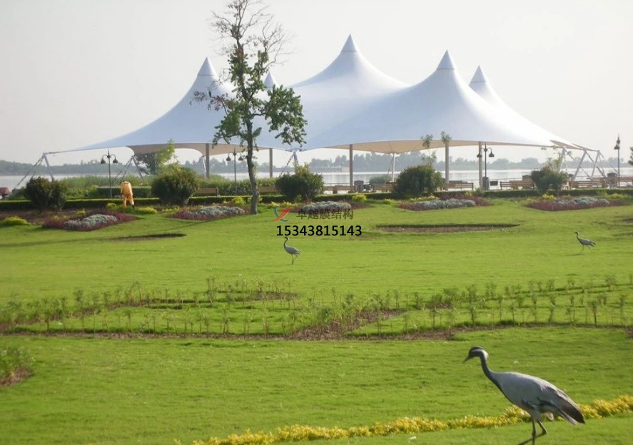 膜結構通透特質使區(qū)域既相對獨立又彼此關聯,游客游覽時感受空間轉換變化,增添景觀趣味性與層次感。同時,膜結構作為景觀視覺焦點,在空曠草坪或廣場上,獨特造型的景觀亭或雕塑吸引目光,使景觀布局更趨均衡且富有吸引力。