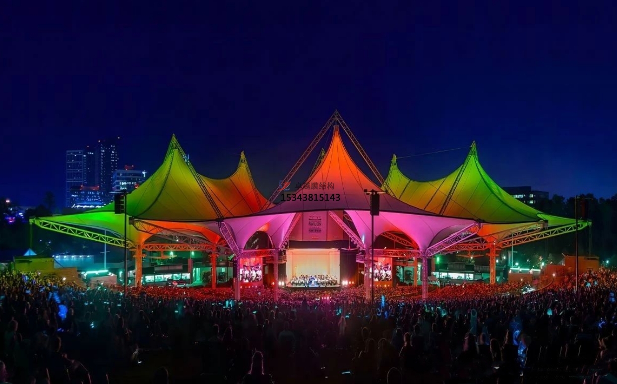 膜結(jié)構(gòu)景觀以其獨(dú)特的外觀和多樣化的功能而備受關(guān)注。膜結(jié)構(gòu)景觀不僅在建筑物上創(chuàng)造出令人印象深刻的視覺效果,同時還具有良好的抗風(fēng)、防水、強(qiáng)度高、耐候性好,防火阻燃、自潔性好,并且不受紫外光線的影響,使用壽命在20年以上。
