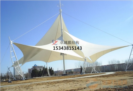膜結構景觀是近一段時間內獲得迅猛發(fā)展的一種新型空間結構,它由于只承受張力,使得材料受力性能得到充分發(fā)揮,而且以重量輕,允許跨越大空間和設計成各種外形,施工周期短,維護方便,造價低廉,可滿足多方面的使用要求,易與自然環(huán)境融為一體等優(yōu)點,被國際建筑界譽為二十一世紀的建筑。