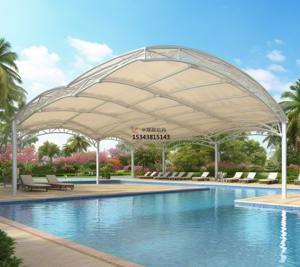 從景觀裝飾角度看,泳池膜結(jié)構(gòu)獨特的造型和輕盈的質(zhì)感,使其成為城市景觀設(shè)計中的重要元素。無論是在公園、廣場,還是在商業(yè)綜合體的露天泳池,膜結(jié)構(gòu)都能與周圍環(huán)境相互映襯,增添城市的藝術(shù)氛圍和活力。