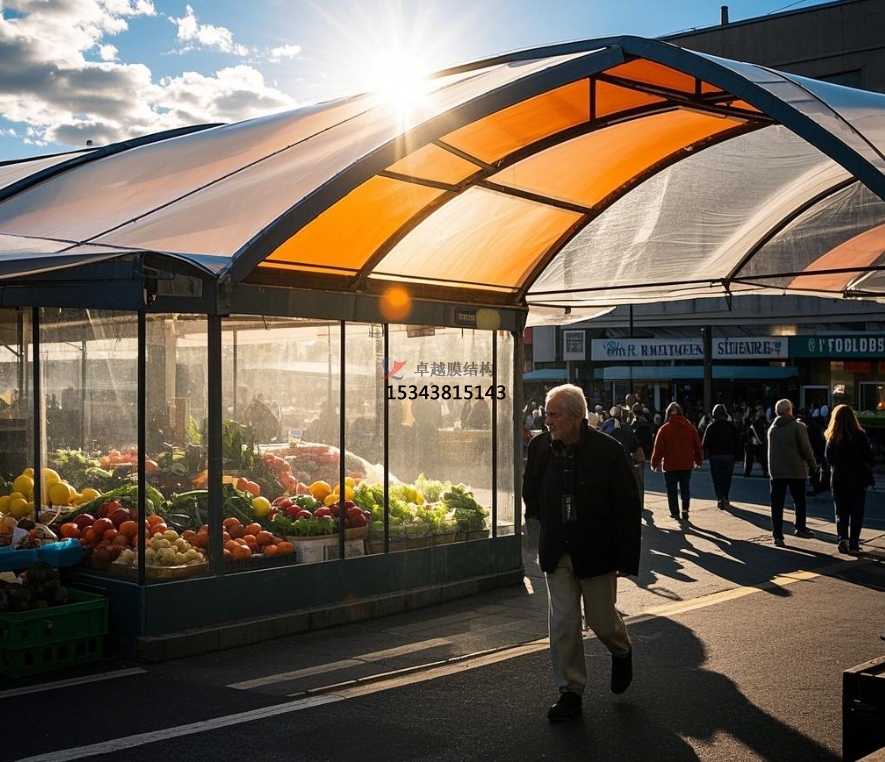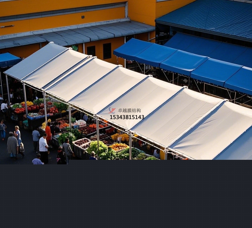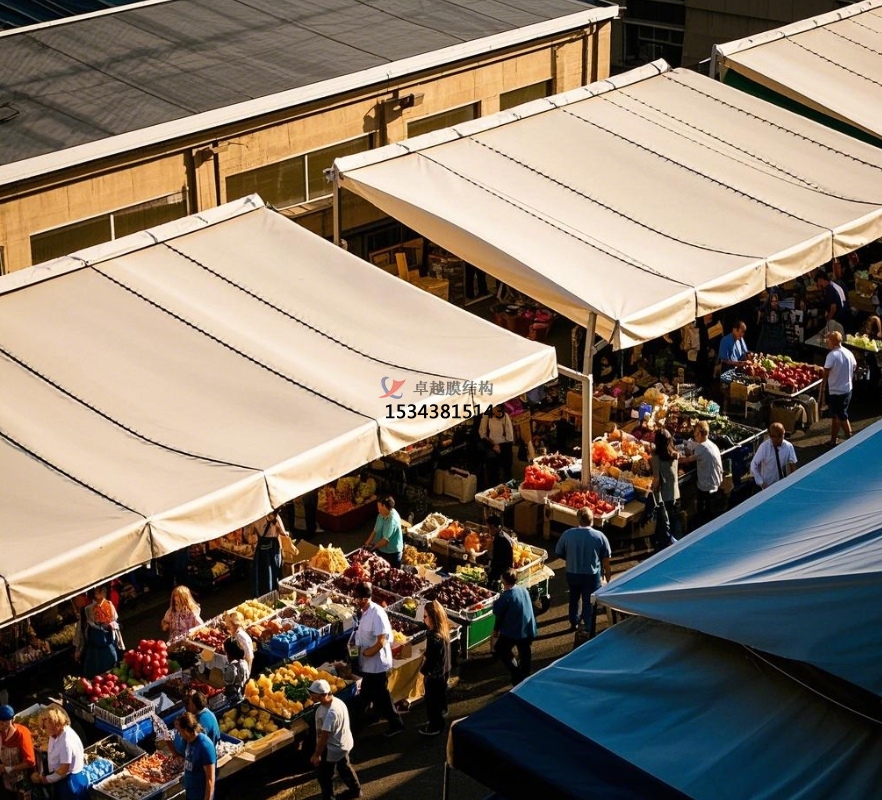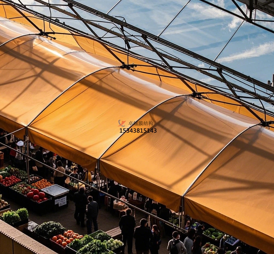 在城市的煙火氣味中,農(nóng)貿(mào)商場是不可或缺的存在,它承載著新鮮食材的匯聚與居民日常生活的快捷。但是,傳統(tǒng)農(nóng)貿(mào)商場頂棚在長期運用中暴露出許多問題,如年久失修易漏雨、空間布局局促、外觀陳腐等。膜結(jié)構(gòu)頂棚的出現(xiàn),宛如一陣清風(fēng),為農(nóng)貿(mào)商場帶來了全新的生機與革新。