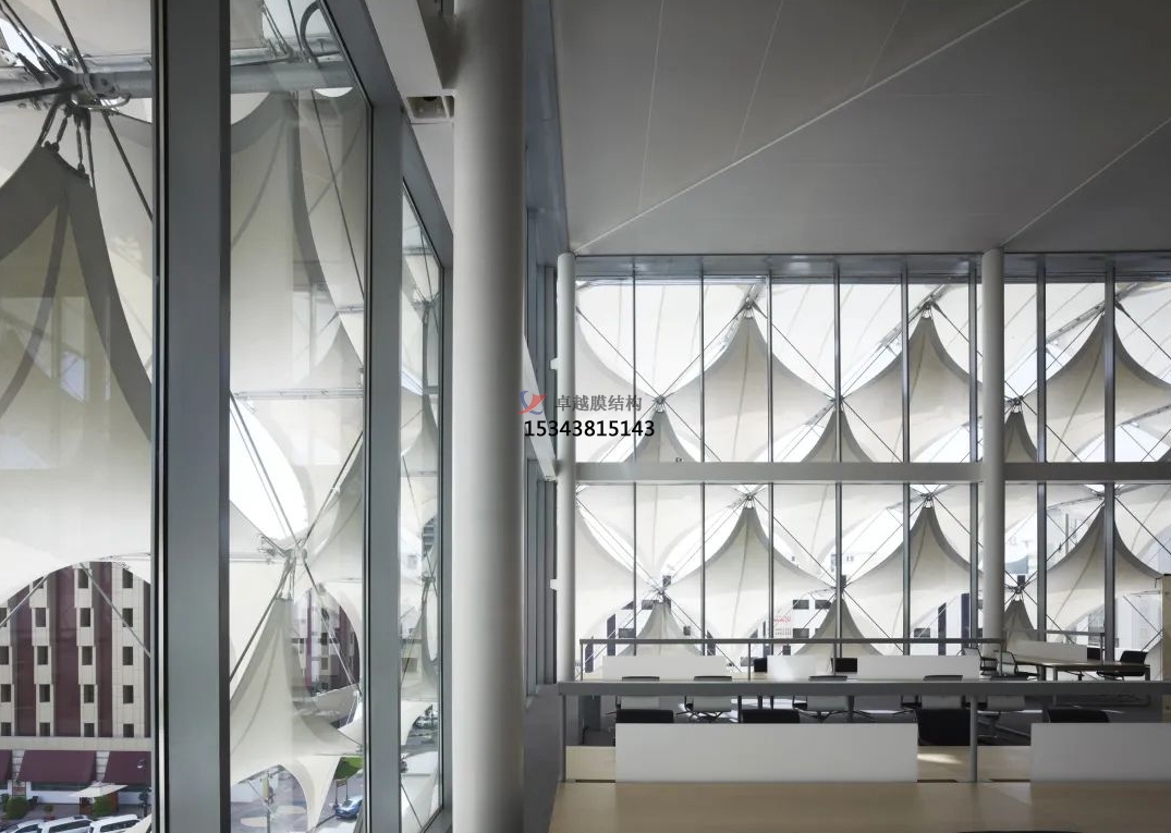 膜結(jié)構(gòu)頂棚可以有效地遮擋陽(yáng)光和雨水,為圖書(shū)館內(nèi)部提供一個(gè)舒適的環(huán)境。同時(shí),膜材料的透光性也可以保證室內(nèi)有足夠的自然光線。