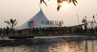盡管上述四種基本形式的造型各不相同,但都遵循一個(gè)原則,即要通過(guò)剛性支承構(gòu)件或連接件在膜面內(nèi)形成一系列的高點(diǎn)和低點(diǎn);這正是互反曲面的基本特征,即互反曲面的邊界不會(huì)位于同一平面內(nèi)。把握了這一原則,在實(shí)際設(shè)計(jì)中就可以根據(jù)支承構(gòu)件的形式(桅桿、拱或吊環(huán))及其對(duì)膜的支承方式(點(diǎn)支承或線支承),來(lái)選取適當(dāng)?shù)纳虡I(yè)廣場(chǎng)雨棚搭建造型形式。