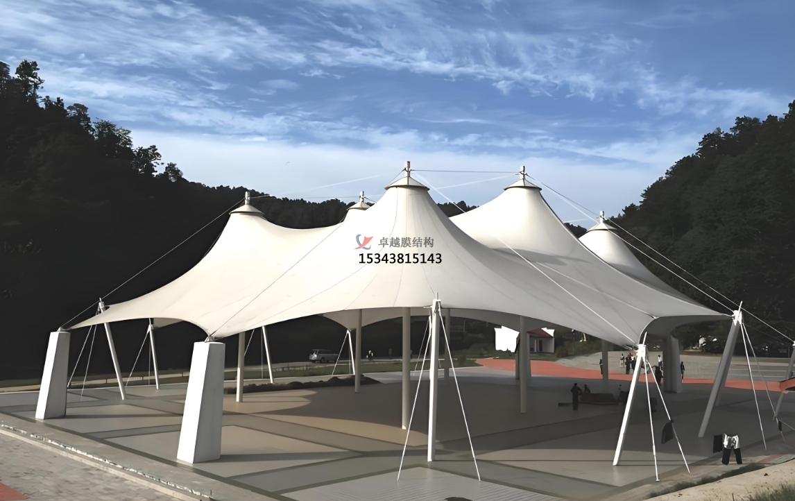 在實(shí)際應(yīng)用方面,景觀膜結(jié)構(gòu)的身影遍布各個(gè)領(lǐng)域。在城市公園與廣場,它常被用于搭建遮陽避雨的設(shè)施,如長廊、亭子等。這些膜結(jié)構(gòu)設(shè)施不僅為市民提供了舒適的休閑空間,讓人們在戶外活動(dòng)時(shí)免受日曬雨淋,其獨(dú)特的造型和光影效果,還為公園增添了濃厚的藝術(shù)氛圍,成為人們拍照打卡的熱門地點(diǎn)。在體育場館,大型的膜結(jié)構(gòu)屋頂和看臺(tái)設(shè)計(jì)屢見不鮮。膜結(jié)構(gòu)減輕了建筑自重,提高了場館的抗震性能,在舉辦賽事時(shí),獨(dú)特的膜結(jié)構(gòu)造型配合燈光效果,能夠營造出熱烈而獨(dú)特的觀賽氛圍,增強(qiáng)觀眾的觀賽體驗(yàn)。商業(yè)街區(qū)和步行街也廣泛應(yīng)用景觀膜結(jié)構(gòu),可作為臨時(shí)的商業(yè)展示空間,或是裝飾性的建筑元素,吸引顧客的注意力,提升商業(yè)空間的品質(zhì)和吸引力,促進(jìn)商業(yè)活動(dòng)的開展。