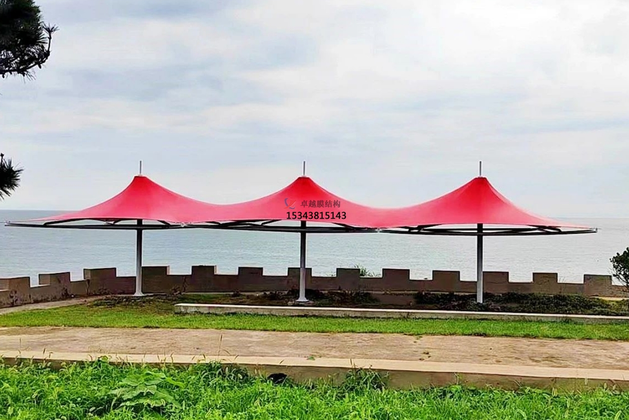 從設(shè)計(jì)角度來看,景觀膜結(jié)構(gòu)有著無與倫比的優(yōu)勢。其形態(tài)具有多樣性,能夠根據(jù)不同的場地條件、功能需求以及審美偏好,設(shè)計(jì)出千變?nèi)f化的造型。在城市公園中,常常能看到造型如靈動(dòng)飛鳥的膜結(jié)構(gòu)亭子,其流暢的曲線與公園的自然環(huán)境相得益彰,為游客提供了別具一格的休憩空間;在商業(yè)廣場,可能會(huì)有巨大的穹頂式膜結(jié)構(gòu),以其宏大的規(guī)模和獨(dú)特的造型吸引人們的目光,成為廣場的標(biāo)志性建筑。而且,景觀膜結(jié)構(gòu)對環(huán)境有著良好的適應(yīng)性,無論是自然風(fēng)光旖旎的景區(qū),還是高樓林立的城市街區(qū),它都能巧妙融入,通過合理的設(shè)計(jì),不僅不會(huì)顯得突兀,反而能為周邊環(huán)境增添獨(dú)特的韻味,成為新的景觀焦點(diǎn)。