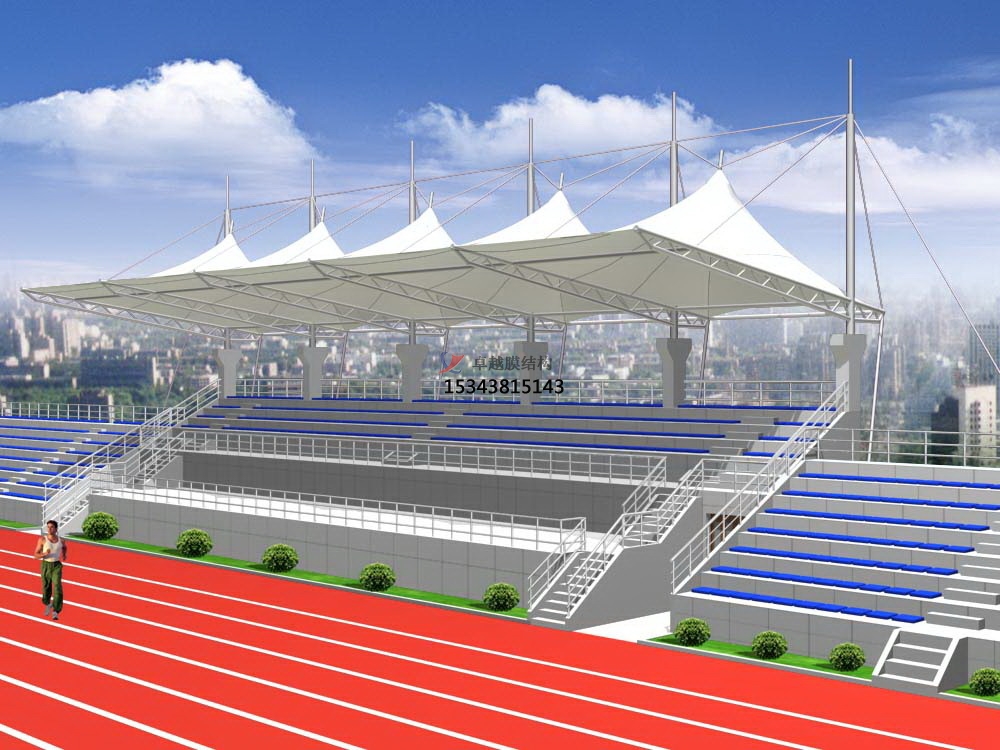 張拉膜看臺主要用于各類地方體育場主席臺雨棚,各類學(xué)校體育場看臺雨棚遮蓋,我公司是國內(nèi)較早從事大懸挑張拉膜結(jié)構(gòu)看臺設(shè)計施工的專業(yè)廠家,下面介紹一下我們在長治市周邊縣市完工的一些張拉膜看臺設(shè)計施工案例,我公司先后在長治周邊承接了長治市第中學(xué)張拉膜看臺雨棚、長治市第三中學(xué)校張拉膜看臺罩棚、長治學(xué)院張拉膜看臺遮陽棚等設(shè)計施工項目,簡介如下: