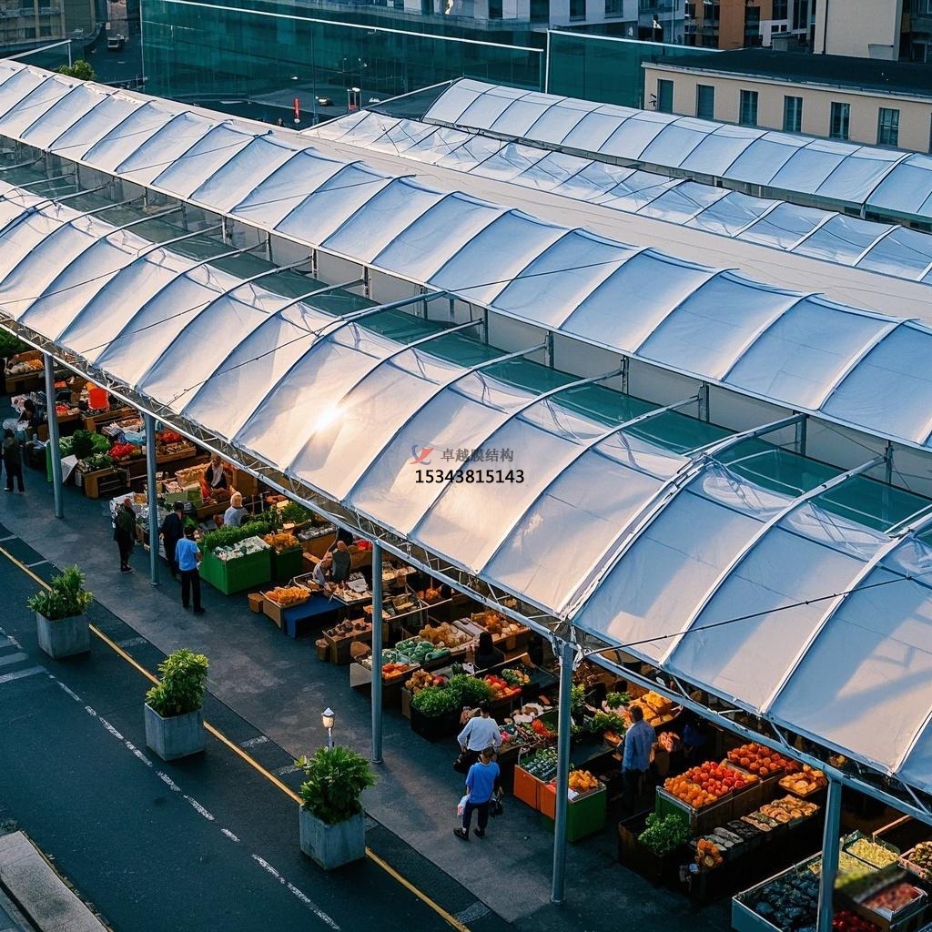 在城市的煙火氣中,農(nóng)貿(mào)市場占據(jù)著獨(dú)特而重要的位置。隨著時(shí)代的發(fā)展與進(jìn)步,傳統(tǒng)農(nóng)貿(mào)市場的面貌也在不斷革新,膜結(jié)構(gòu)在其中的應(yīng)用,為其帶來了全新的生機(jī)與活力。這種創(chuàng)新的建筑形式正以獨(dú)特的優(yōu)勢,重塑著農(nóng)貿(mào)市場的空間布局與氛圍,為市民的日常購物體驗(yàn)增添了別樣的魅力。?