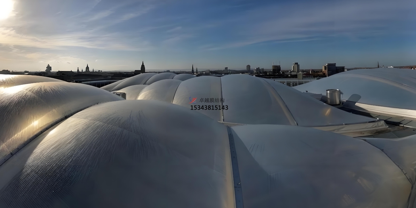 首先區(qū)分ETFE膜結(jié)構(gòu)使用的是膜材厚度。建筑用ETFE膜常規(guī)的有100μm、150μm、200μm、250μm、300μm厚,最厚的有500μm。