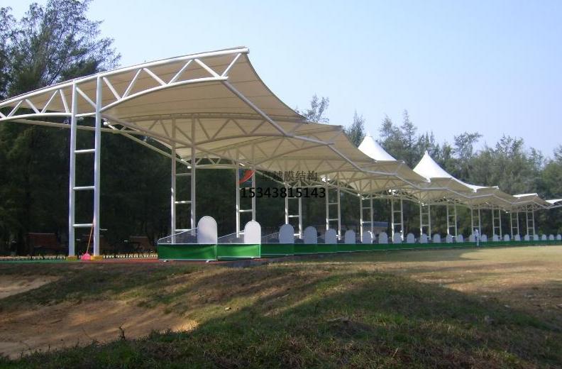 高爾夫球場綠草如茵青山環(huán)繞的整體環(huán)境,時尚又環(huán)保的配套設(shè)施才能更加提升其高貴品質(zhì)。膜結(jié)構(gòu)因適用廣,技術(shù)性及藝術(shù)性兼?zhèn)?,用來建設(shè)高爾夫球場發(fā)球臺再合適不過,潔白的膜材及獨特的造型搭配,此外,因張拉膜具有自重輕的特性,使其外表看起來輕盈簡約,讓前來運動的人們耳目一新,卸下平日工作壓力帶來的那份沉重,盡情享受身體與心靈的放松,何樂而不為呢?