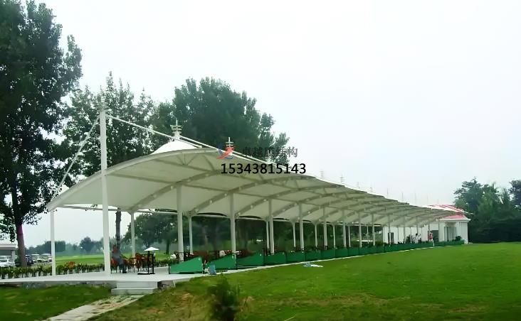 應(yīng)用場景:發(fā)球臺罩棚,看臺與觀賽區(qū),停車棚與配套設(shè)施,景觀與休閑區(qū)。發(fā)球臺罩棚為球員提供遮陽、避雨的空間,造型靈活美觀,與球場自然環(huán)境融合??磁_與觀賽區(qū)大跨度膜結(jié)構(gòu)看臺可覆蓋大量觀眾,輕量化設(shè)計(jì)降低基礎(chǔ)成本,同時具備通透視野。停車棚與配套設(shè)施則保護(hù)車輛免受紫外線、雨水侵蝕,常見于高爾夫球場入口或停車場。景觀與休閑區(qū)膜結(jié)構(gòu)為小品、廊道等提升球場景觀性,營造現(xiàn)代感。