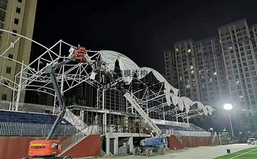 鄭州十八中膜結(jié)構(gòu)看臺/頂棚項目膜結(jié)構(gòu)、鋼結(jié)構(gòu)設(shè)計、加工、運輸、安裝。