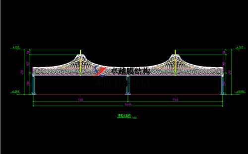 本工程膜材采用白色高端國(guó)產(chǎn)星益達(dá)PVDF高自潔環(huán)保建筑膜材,鋼結(jié)構(gòu)采用更好的標(biāo)準(zhǔn)Q235B鋼材,表面采用酚醛底漆處理,面漆采用白色鋼結(jié)構(gòu)專(zhuān)用快干磁漆。