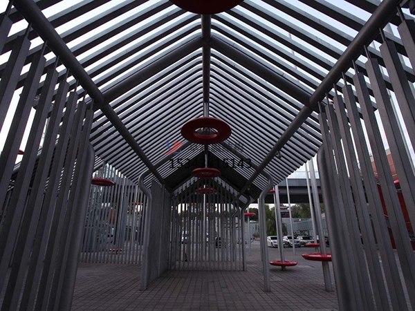 鋼結(jié)構(gòu)連廊使城市景觀逐漸走向美學(xué),走向自然,它具有裝飾塑料藝術(shù)的特點(diǎn),并結(jié)合了美學(xué)和實(shí)踐的特點(diǎn),也顯現(xiàn)出了這片土地奇特的藝術(shù)性。