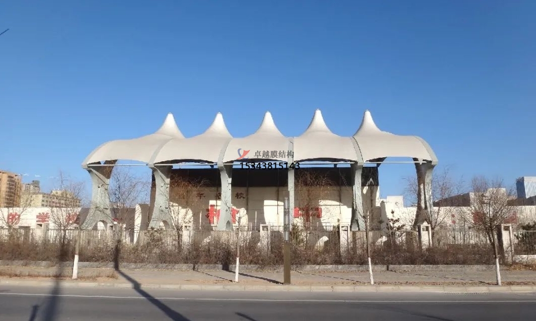 :膜面曲率與張力需精確計(jì)算,確??癸L(fēng)壓(≥1.5kN/m²)、排水(坡度>10°)等性能達(dá)標(biāo);