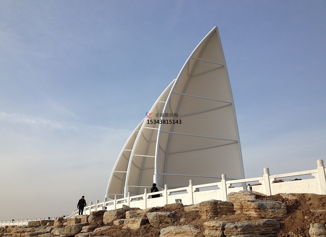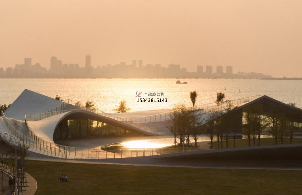 海邊的景觀膜結(jié)構(gòu)最顯著的特點是其與海洋環(huán)境的和諧共生。這些結(jié)構(gòu)往往采用流線型設(shè)計,模仿海浪、貝殼等自然元素,與周圍的海濱風光相得益彰。膜材料的選擇也注重透光性和耐候性,既保證了室內(nèi)光線的充足,又能抵御海邊惡劣的天氣條件,如強風、高鹽度等。