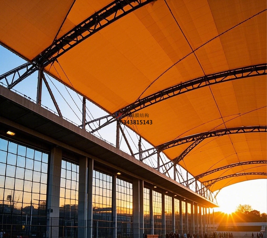 足球場膜結(jié)構(gòu)主要由膜材與支撐結(jié)構(gòu)攜手構(gòu)建。膜材堪稱核心角色,常用的如聚四氟乙烯(PTFE)膜材,不僅具備超強(qiáng)的耐候性,可從容應(yīng)對風(fēng)吹日曬、雨雪侵襲,長期使用也不易老化損壞;其自潔性能更是出色,表面不易沾染灰塵污垢,能始終保持潔凈外觀。乙烯 - 四氟乙烯共聚物(ETFE)膜材同樣表現(xiàn)不凡,擁有良好的透光性,可讓充足的自然光灑入足球場,營造明亮舒適的運(yùn)動(dòng)環(huán)境,同時(shí)具備較高的強(qiáng)度與柔韌性 。