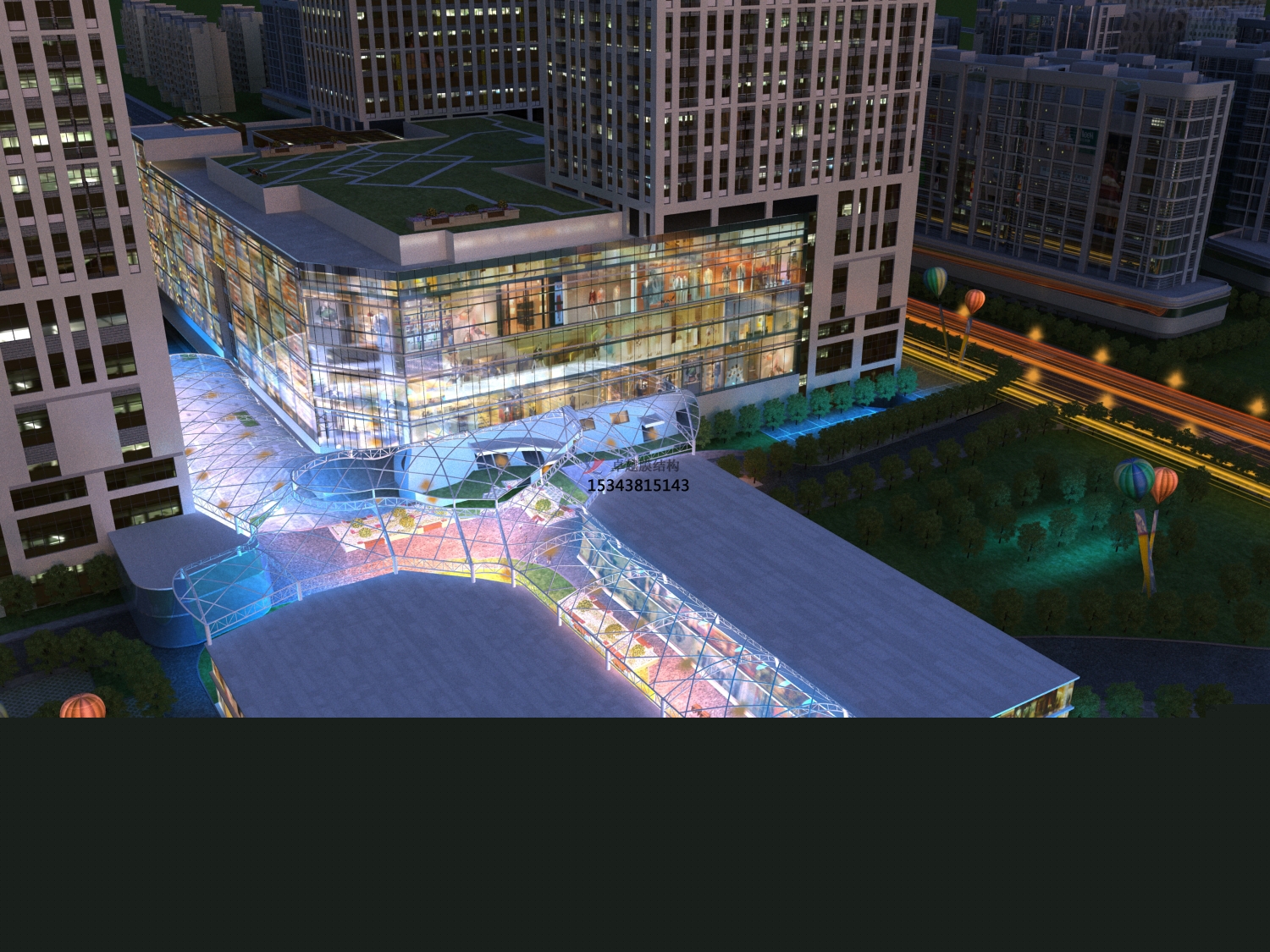 膜結(jié)構(gòu)遮陽棚工程頂棚面重量僅為常規(guī)遮陽棚的1/30,這就降低了基礎(chǔ)的造價。同時膜結(jié)構(gòu)工程奇特的造型和夜景效果有明顯的“建筑可識性”和商業(yè)效應(yīng),其價格效益比更高。