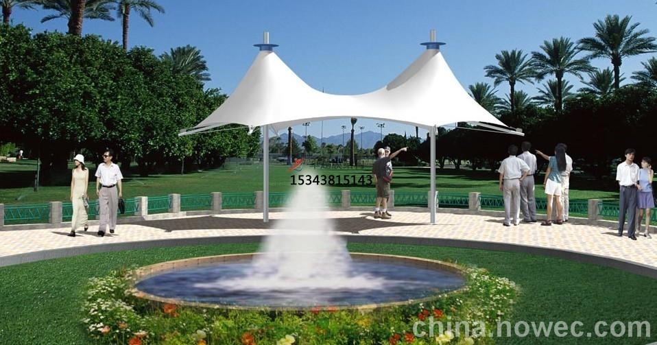 2、一個城市的中心區(qū)反映一個城市的地理風(fēng)貌和民族風(fēng)情,同時,也是一個城市文化發(fā)展程度的標(biāo)志。而景觀設(shè)計要求其具有廣泛的可讀性、雅俗共賞,既有超凡脫俗的藝術(shù)價值,又能使大眾喜聞樂見與大眾息息相通。張拉膜以其輕盈飄逸的造型、柔美并帶有力量的曲線和大跨度和大空間的鮮明個性和標(biāo)識性,應(yīng)用于城市小品設(shè)計中。