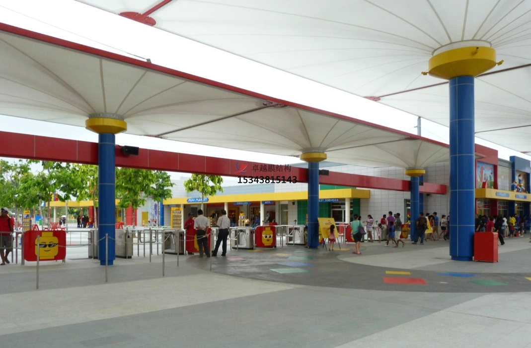 膜結(jié)構(gòu)遮陽棚,不僅能夠為游客提供遮陽避雨的場所,還能增加游樂設(shè)施的視覺吸引力。此外,在排隊等候區(qū)、休息區(qū)等場所設(shè)置的膜結(jié)構(gòu)遮陽棚,也為游客提供了更加舒適、便捷的等待環(huán)境。