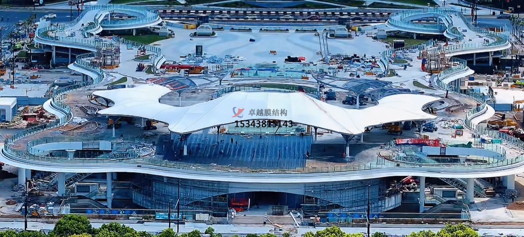 六、膜材安裝:膜結(jié)構(gòu)的安裝包括膜體展開、連接固定和張拉成形三個部分。膜結(jié)構(gòu)安裝時,應(yīng)在膜面上安設(shè)爬用安全網(wǎng),作業(yè)人員必須系安全帶。在安裝過程中,作業(yè)人員在膜面上行走應(yīng)穿軟底鞋,不應(yīng)佩掛鑰匙等硬物。