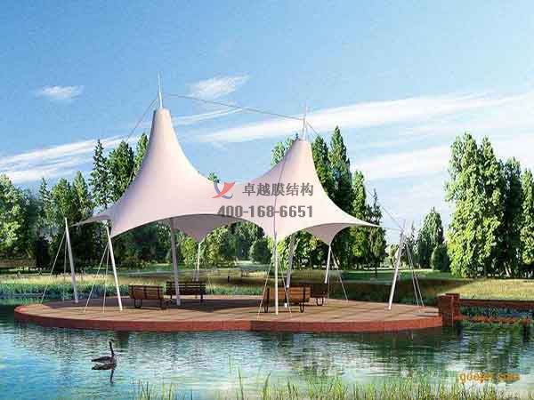 2、景觀膜結構是目前發(fā)展很快的一種新型空間結構,是一種效率極高的張力集成體系,可以充分發(fā)揮鋼索的強度與張拉整體結構的空間作用。它通過鋼骨架、鋼索與膜材共同受力形式穩(wěn)定曲面來覆蓋建筑空間,具有高度的形體可塑性和結構靈活性,即通過對膜材內部施加一定的預張力,使其具備了抵抗外荷載能力,從而充當結構材料的一種結構體系。我公司先后在青島地區(qū)承接了青島動物園景觀、青島世紀公園景觀、青島五四廣場廣場景觀小品的設計施工,簡介如下: