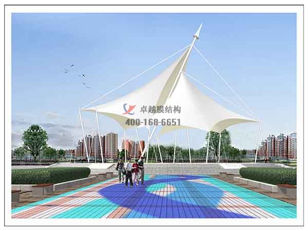 2、一個城市的中心區(qū)反映一個城市的地理風貌和民族風情,同時,也是一個城市文化發(fā)展程度的標志。而景觀設計要求其具有廣泛的可讀性、雅俗共賞,既有超凡脫俗的藝術價值,又能使大眾喜聞樂見與大眾息息相通。張拉膜以其輕盈飄逸的造型、柔美并帶有力量的曲線和大跨度和大空間的鮮明個性和標識性,應用于城市小品設計中。