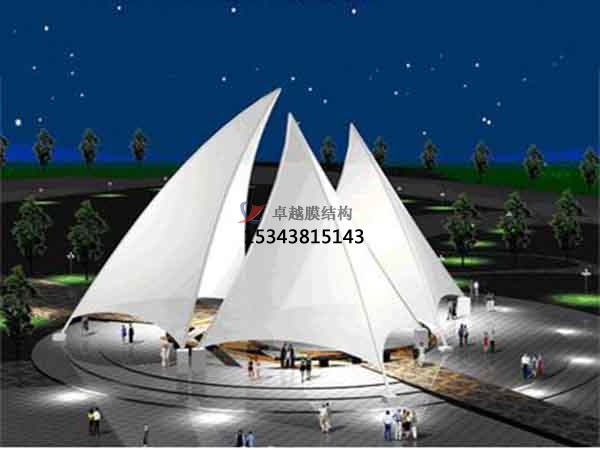 景觀膜結(jié)構(gòu)的獨(dú)特曲面外形使其具有強(qiáng)烈的雕塑感。膜面通過(guò)張力達(dá)到自平衡。負(fù)高斯膜面高低起伏具有的平衡感使體型較大的結(jié)構(gòu)看上去像擺脫了重力的束縛般輕盈地 雕塑般的質(zhì)感令人激動(dòng),更好的膜結(jié)構(gòu)設(shè)計(jì)是結(jié)構(gòu)與外形的有機(jī)融合,使其顯得了類(lèi)拔萃,同時(shí)與自然環(huán)境、歷史及現(xiàn)代的城市景觀有機(jī)結(jié)合。輕型結(jié)構(gòu)可以看成是大型的雕塑作品,可為其周邊空間增添活力,成為周?chē)h(huán)境的補(bǔ)充和焦點(diǎn)。利用膜材的透光性和反射性,經(jīng)過(guò)設(shè)計(jì)的人工燈光也可使膜結(jié)構(gòu)成為光的雕塑。