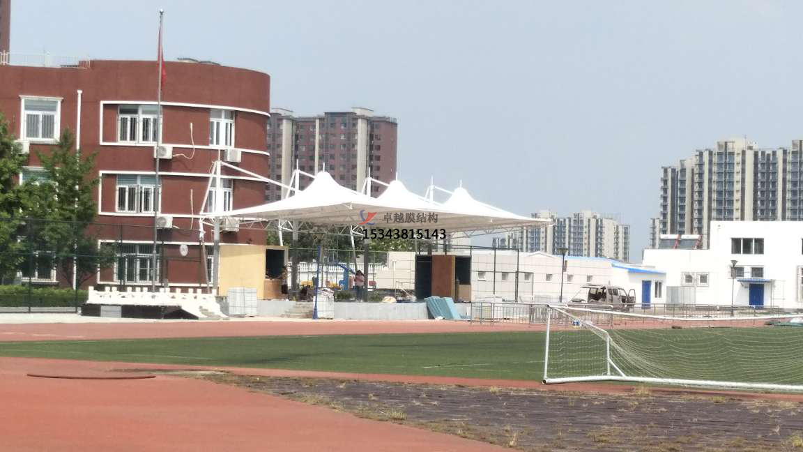 膜結(jié)構(gòu)看臺的排水措施。因為用于膜結(jié)構(gòu)中的膜材料本身具有很強的拉伸性能,并且該拉伸性能由于大重力的擠壓作用而容易導(dǎo)致膜結(jié)構(gòu)變形。遇到雨雪天氣時,這種變形會導(dǎo)致雨水積聚在凹槽中,無法及時排出。它不僅會損壞膜材料,還會導(dǎo)致膜結(jié)構(gòu)被雨水腐蝕,從而嚴重影響停車棚的質(zhì)量。因此,在施工過程中必須采取排水措施。