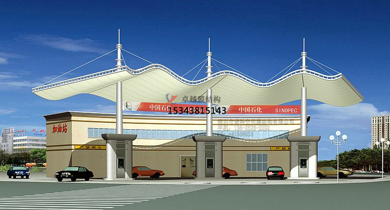 加油站罩棚是加油站的重要組成部分,設(shè)計加油站罩棚不僅僅要具有牢固、省電、防水等功能,還要美觀大方呢。膜結(jié)構(gòu)輕巧、別致的造型在停車場及候車廳的建設(shè)中擔(dān)當(dāng)了重要角色,除了滿足防風(fēng)雨、防日曬等基本功能外,并有較好的標(biāo)識招攬效果,展現(xiàn)了人們個性化的一面。