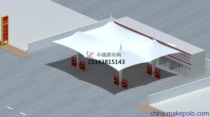 3、中國石化加油站(賽魚站)張拉膜雨棚/頂蓋