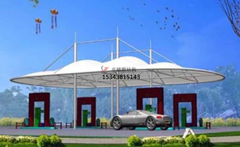 加油站膜結(jié)構(gòu),一般是指安裝在加油站的膜結(jié)構(gòu)頂棚。膜結(jié)構(gòu)頂棚因其自重輕,具有良好的受力特點(diǎn),所以成為大跨度空間結(jié)構(gòu)的主要形式之一,加油站膜結(jié)構(gòu)也屬于其范疇。