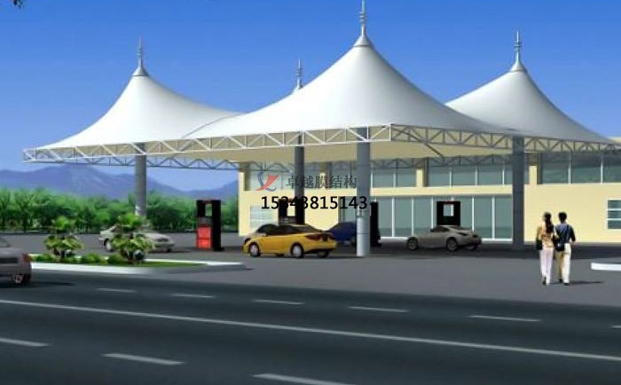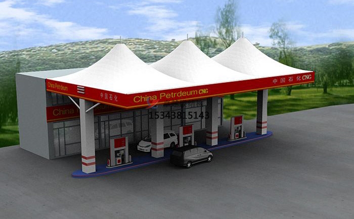 尖頂小型加油站張拉膜結(jié)構(gòu)效果圖