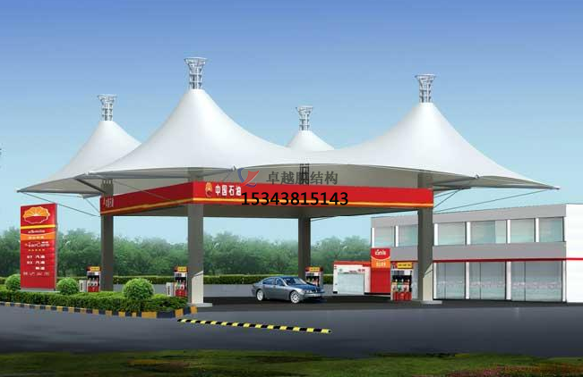 加油站膜結(jié)構(gòu),一般是指安裝在加油站的膜結(jié)構(gòu)頂棚。膜結(jié)構(gòu)頂棚因其自重輕,具有良好的受力特點,所以成為大跨度空間結(jié)構(gòu)的主要形式之一,加油站膜結(jié)構(gòu)也屬于其范疇。