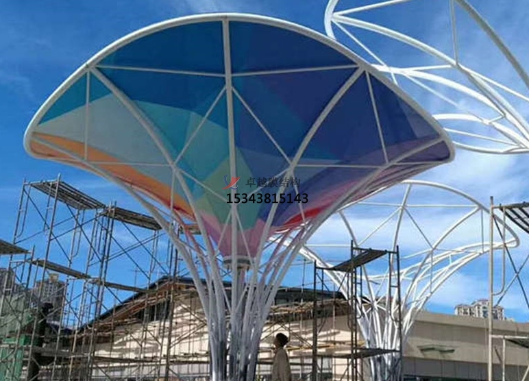 索膜結(jié)構(gòu)建筑在材料中面臨的挑戰(zhàn):由于膜材的環(huán)境適應(yīng)性局限,老化與紫外線損傷,盡管PTFE、ETFE等膜材具有較好耐候性,但長期紫外線照射仍會(huì)導(dǎo)致膜材涂層降解、強(qiáng)度下降(如PVC膜材使用壽命通常在10-15年,需定期更換)。溫度變形膜材熱脹冷縮系數(shù)較大(如ETFE膜材溫度變形率達(dá)0.15%/℃),溫差變化可能導(dǎo)致接縫處撕裂或索力松弛,需在節(jié)點(diǎn)設(shè)計(jì)中預(yù)留變形余量。索網(wǎng)的腐蝕與疲勞問題,鋼材腐蝕風(fēng)險(xiǎn),索網(wǎng)多采用高強(qiáng)度鋼索,若防腐措施不足(如沿海地區(qū)鹽霧侵蝕、工業(yè)污染環(huán)境),易發(fā)生應(yīng)力腐蝕開裂(SCC),降低承載能力。疲勞破壞隱患,動(dòng)態(tài)荷載(如風(fēng)振、人群活動(dòng))下,索網(wǎng)節(jié)點(diǎn)連接處可能因反復(fù)應(yīng)力產(chǎn)生疲勞裂紋,尤其在節(jié)點(diǎn)構(gòu)造復(fù)雜處(如錨具、索夾部位)。