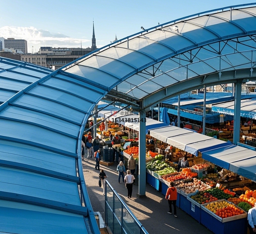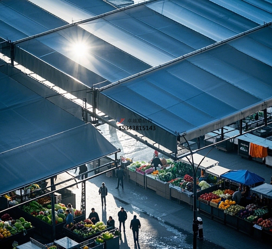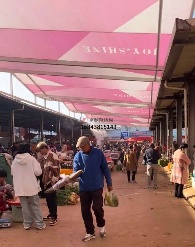 膜材差異:不同膜材價格懸殊。PVC 膜材價格相對較低,每平方米在 200 - 500 元不等,適合預算有限、對性能要求相對不高的小型農貿市場;PTFE 膜材價格高昂,每平方米可達 1000 - 3000 元,常用于追求高品質、長壽命的大型或重要農貿市場項目。