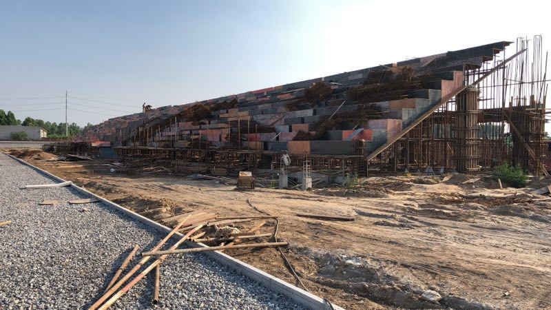 對(duì)邊角及有褶皺的區(qū)域進(jìn)行局部張拉調(diào)節(jié),并更終固定膜面及節(jié)點(diǎn);完成雨水系統(tǒng)安裝及防水覆蓋等;