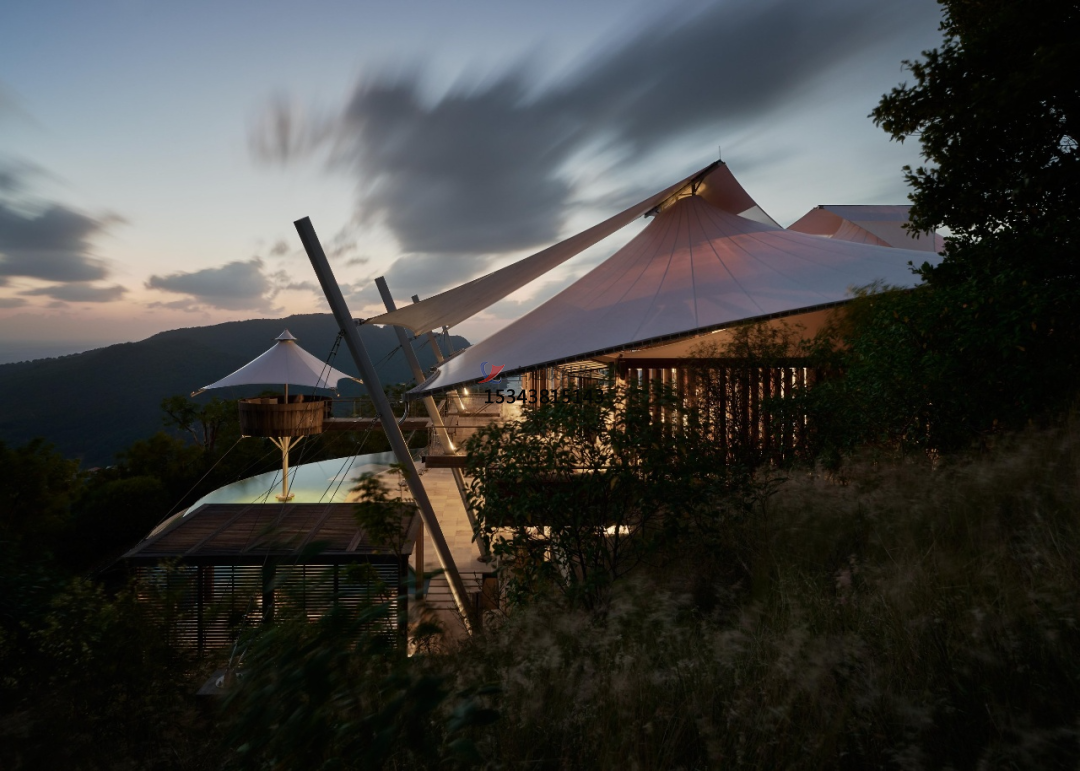 2. 張力式膜結(jié)構(gòu):僅利用簡(jiǎn)單的支撐系統(tǒng)及膜素材自身的張力特性,構(gòu)成此類膜結(jié)構(gòu)。